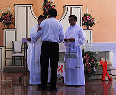 P. William Dávila, de la Subcomisión de VIH, dirige la oración final |