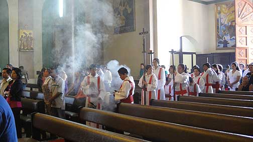 Vista general del templo durante el ingreso de la procesión. |