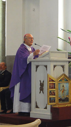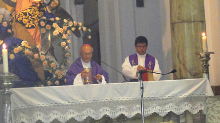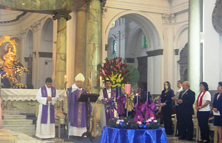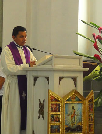 Monseñor Rodolfo Mendoza, Obispo Auxiliar de la Arquidiócesis de Santiago de Guatemala presidió la Eucaristía. Concelebraron P. Damiani Ovalle de la Arquidiócesis de Los Altos y P. Henry Martínez de Catedral