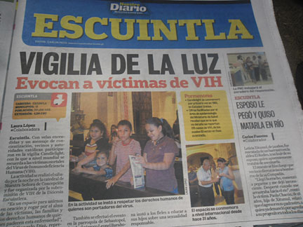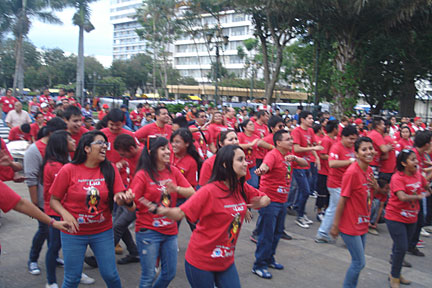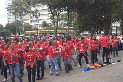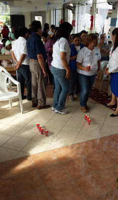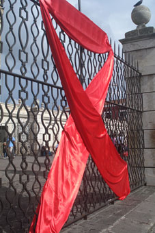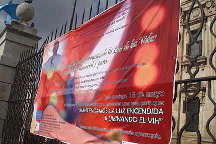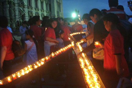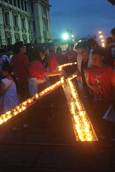 Encendida de velas para formar el listón rojo