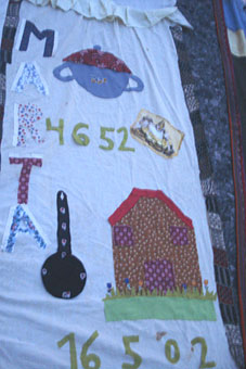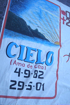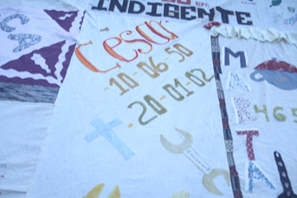 Mantas elaboradas para conmemorar a quienes han fallecido por causa de esta pandemia