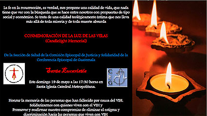 Conmemoración de la Luz de la Velas 2019 Domingo 19 de mayo • Convocatoria a Obispos y Sacerdotes • Información sobre esta Conmemoración (texto) Agrandar imagen de invitación a Eucaristía Agrandar imagen de postal conmemorativa